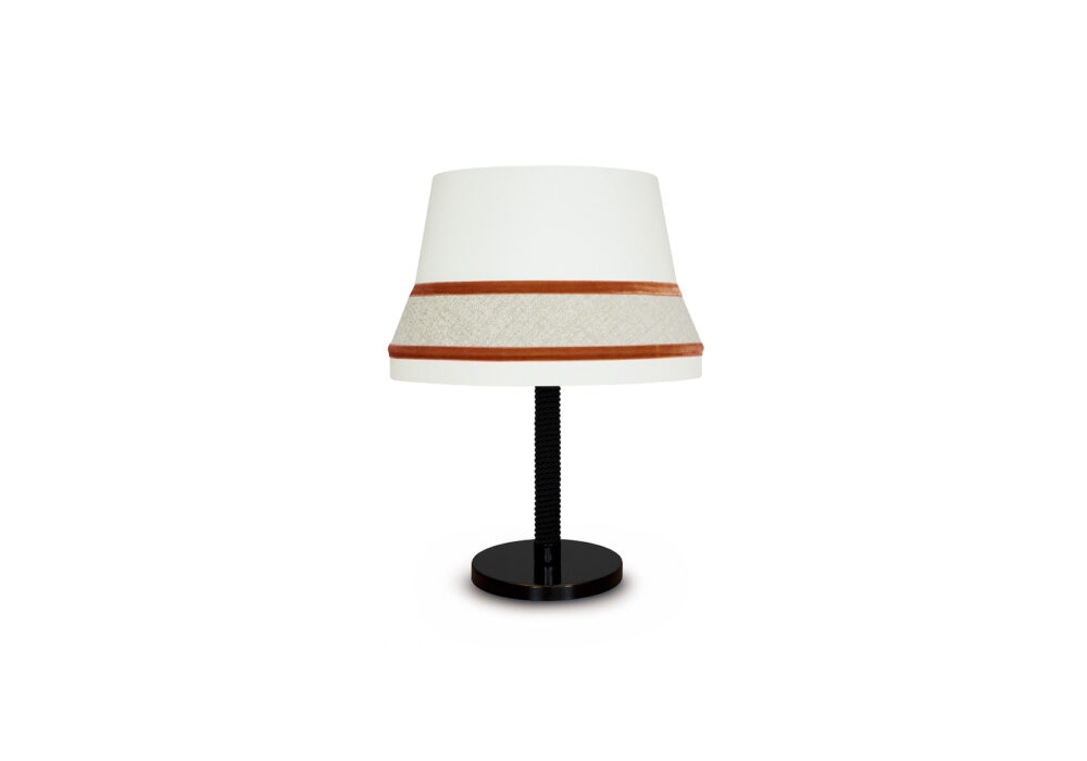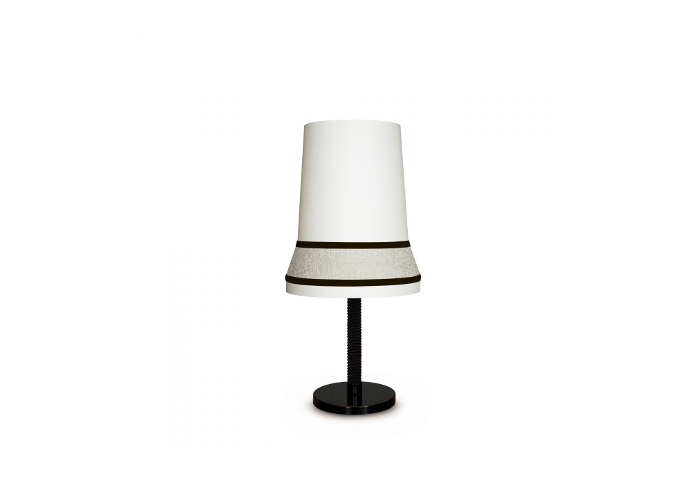 Audrey diseñada por Massimiliano Raggi para Contardi es una lámpara de mesa con base circular y tallo recubierto con cable trenzado de seda negra. La pantalla es de tejido enriquecida con inserciones disponibles en diferentes tipos de tejidos. La fuente de luz adoptada es con casquillo tipo LED E27 con cable de alimentación recubierto de tela negra con interruptor de encendido/apagado o sistema de regulable. Audrey está disponible en diferentes acabados, versiones y tamaños.