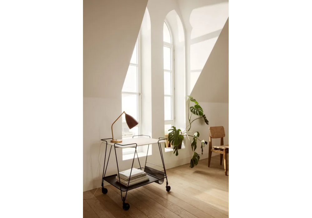 Gräshoppa diseñada por Greta M. Grossman para Gubi es una lámpara de mesa con soporte tubular en latón. La pantalla se puede inclinar y girar 360°. Bombilla no incluida. Disponible en diferentes acabados.