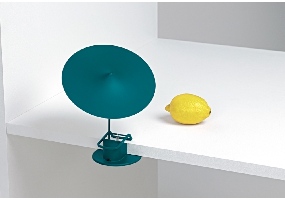 W153 Île designed by Inga Sempé for Wastberg is a table lamp in aluminum with steel shade. It has a flat base, allowing it to stand on a flat surface.