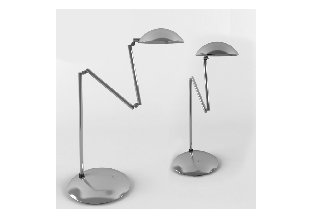 Orbis diseñada por Herbert H. Schultes para ClassiCon es una lámpara de mesa, totalmente ajustable. Cable con interruptor y atenuador de luz integrado. Estructura lacada negra, blanca o totalmente cromada.