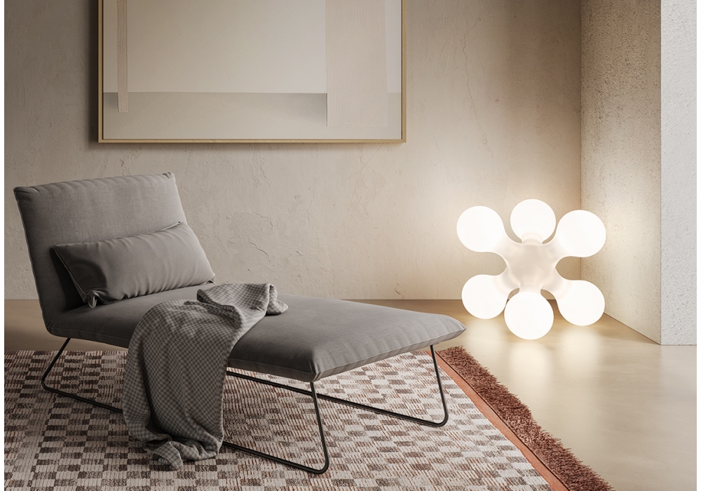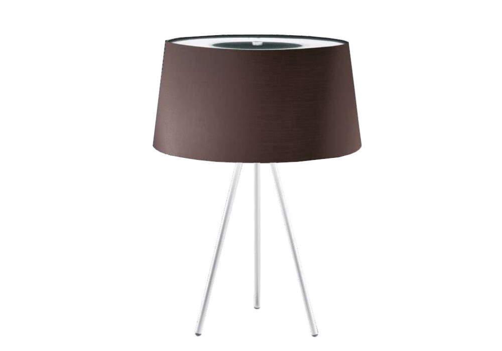 Tripod diseñada por Christophe Pillet para Kundalini es una lámpara de mesa con estructura de metal pintado y pantalla de tejido ignífugo cerrada por un disco de metal microperforado y pintado. Disponible en tres acabados.
