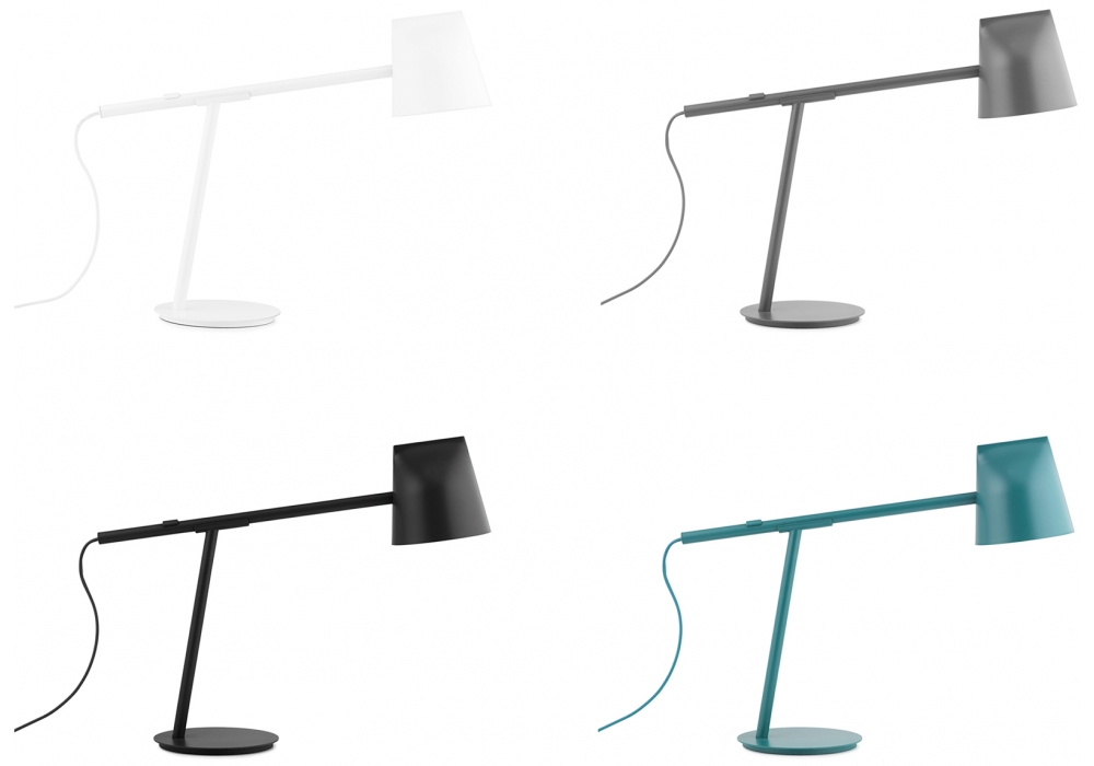 Momento diseñada por Daniel Debiasi & Frederico Sandris para Normann Copenhagen es una lámpara de mesa con base circular en metal con recubrimiento en polvo. Estructurada por un brazo metálico deslizante, para tener la posición adecuada en longitud o profundidad, y una pantalla plástica giratoria, para dirigir la luz al punto deseado. La fuente de luz es LED (incluida), alimentada por un cable revestido de fibra textil del mismo color que la lámpara. Momento está disponible en versión UE (Europa) o US (U.S.A), y en cuatro colores diferentes; negro, blanco, gris o verde petróleo.