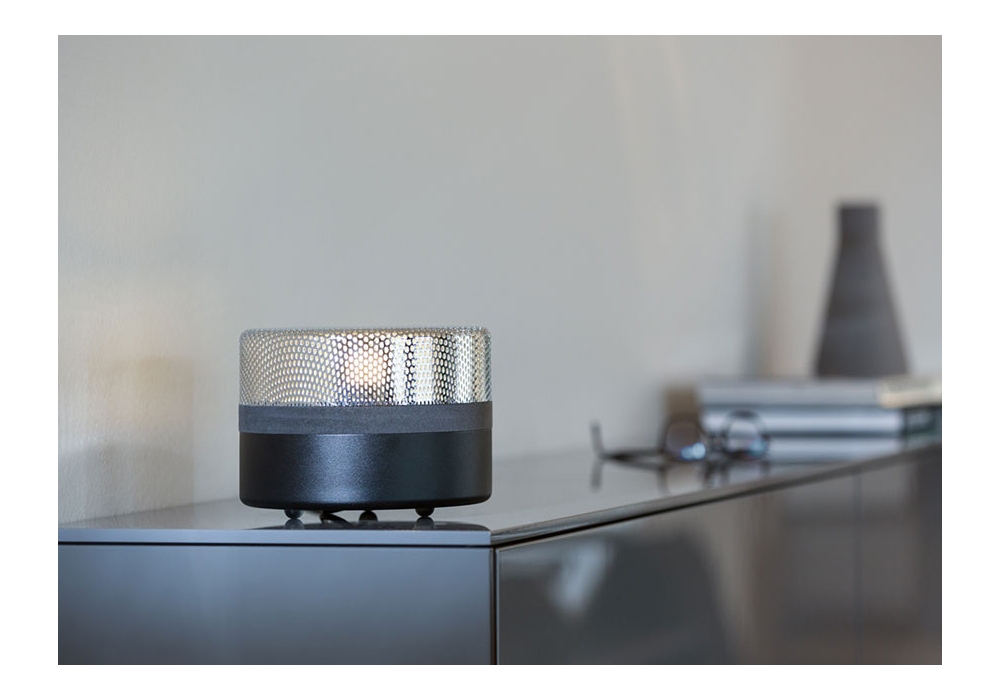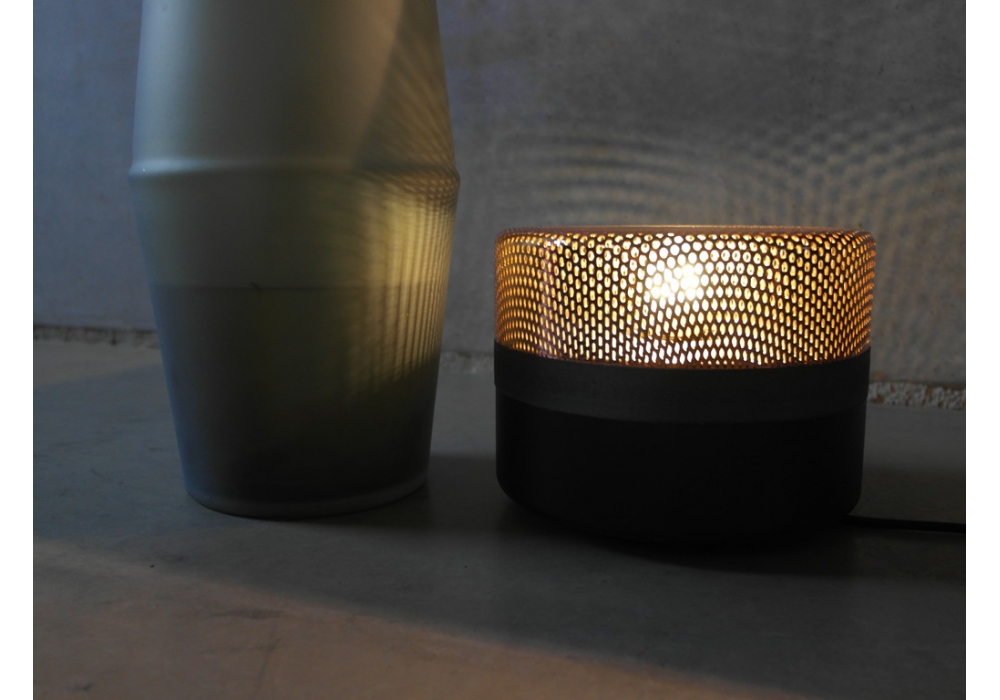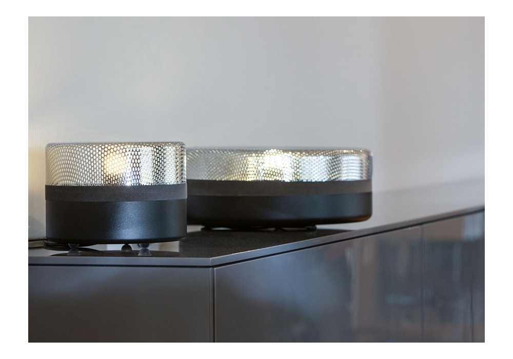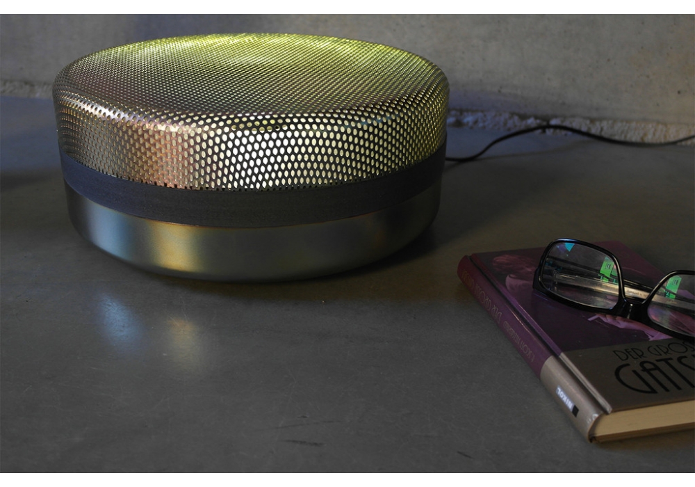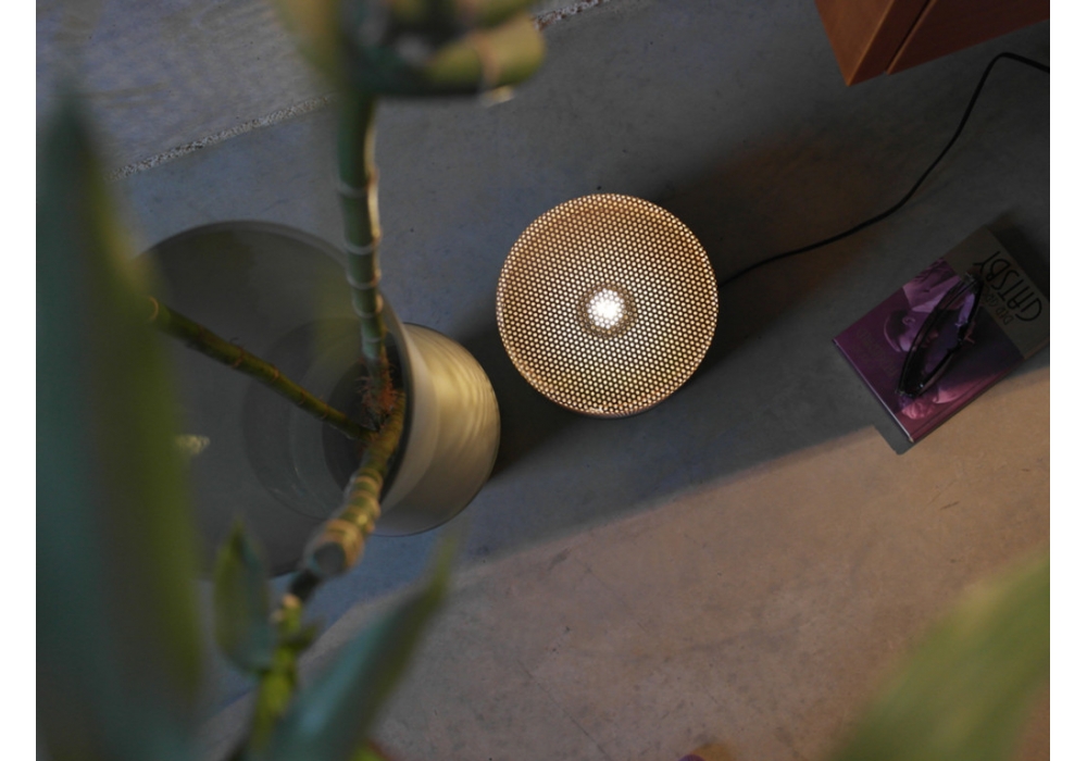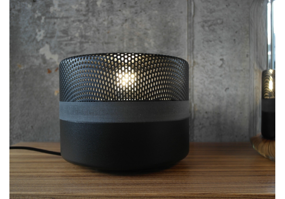 Steel Drop diseñada por e27 Berlin para Pulpo es una lámpara de mesa realizada en acero y chapa perforada con cable en PVC. Steel Drop tiene la pantalla de acero que se apoya sobre una base metálica opaca, separadas por una tira fina de madera. Disponible en diferentes acabados.