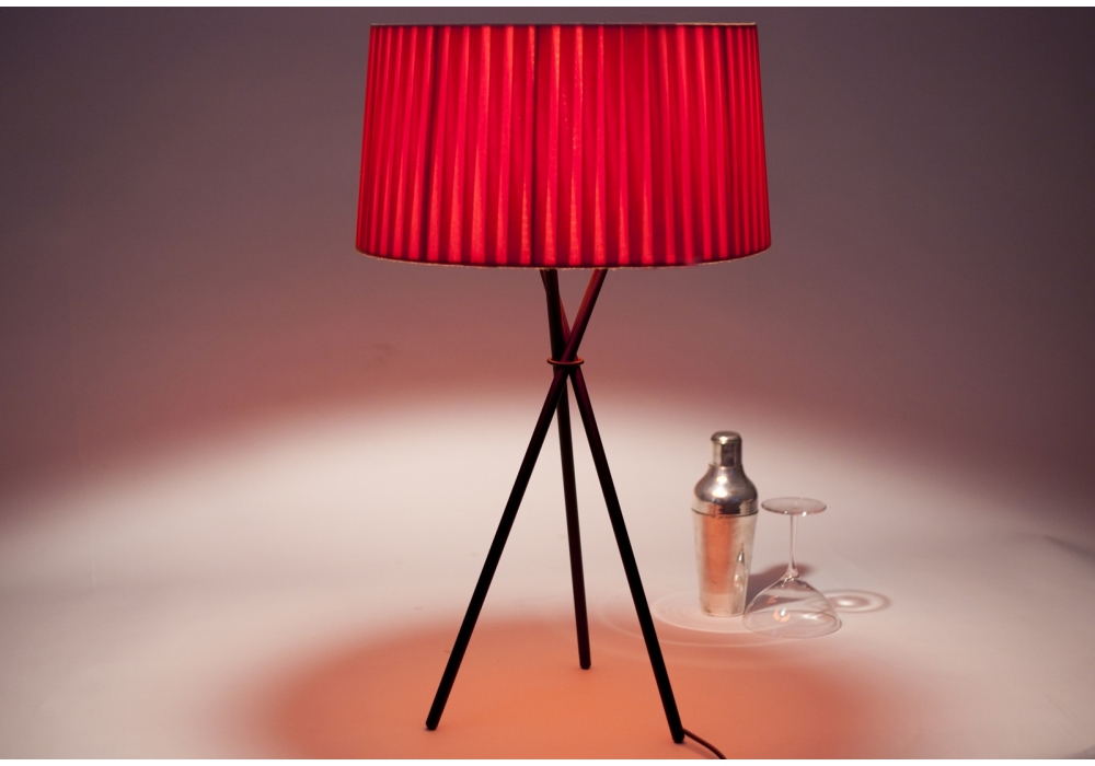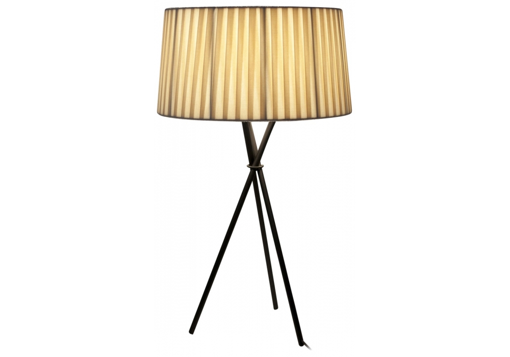 Tripode diseñada por Santa&Cole Team es una hermosa lámpara de mesa con estructura metálica y pantalla disponible en diferentes acabados. Estamos ante un haz de tres tubos negros unidos como un juego de palillos chinos, que levanta una amplia pantalla encintada. Encendida, la lámpara proporciona mucha y cálida luz, y apagada constituye una escultura volumétrica que dignifica el espacio. También disponible en 2 dimensiones.