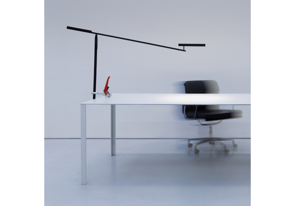 Morsetto diseñada y producida por Davide Groppi es una lámpara de mesa estructurada por dos brazos móviles en metal pintado negro mate. El cabezal articulado adopta una fuente de luz LED regulable en diferentes gradaciones de luz. La base está formada por una abrazadera de taller que da la posibilidad de anclarla firmemente a un punto de fijación.