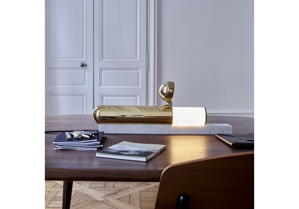 ISP diseñada por Ilia Potemine para DCW Éditions es una lámpara de mesa con estructura de latón y base de mármol disponible en 2 diferentes acabados: blanco o negro. ISP es una pequeña revolución en el mundo de la luz asociada al mundo del diseño. Estéticamente, nada se le parece. No es la interpretación de una luminaria existente, esto no es (un redit) de pasado olvidado, es un objeto contemporáneo para un mañana, es una joya luminaria que alumbra un universo misterioso. También es una joya de mecánica en una cápsula simple de latón.