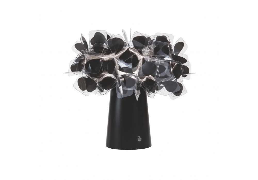 Clizia Battery diseñada por Adriano Rachele para Slamp es una lámpara de mesa recargable con base ligeramente cónica en policarbonato. El difusor es de Cristalflex® o Lentiflex® y apantalla una fuente de luz tipo LED. Clizia Battery está disponible en diferentes acabados.