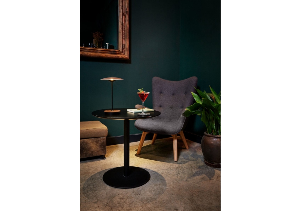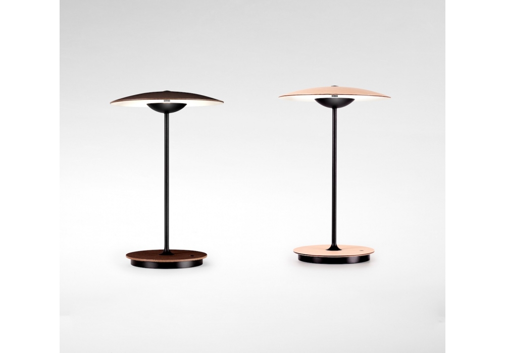 Ginger 20 M diseñada por Joan Gaspar para Marset es una lámpara de mesa portátil con difusor y base en madera prensada de 4mm en roble natural o wengé o en aluminio cepillado. Difusor de aluminio y tija de metal negro lacado mate. La batería se encuentra en el interior de la base, con una autonomía de 5 horas. Sensor de atenuación de 3 posiciones.