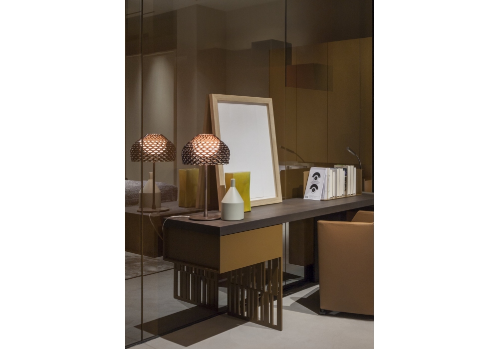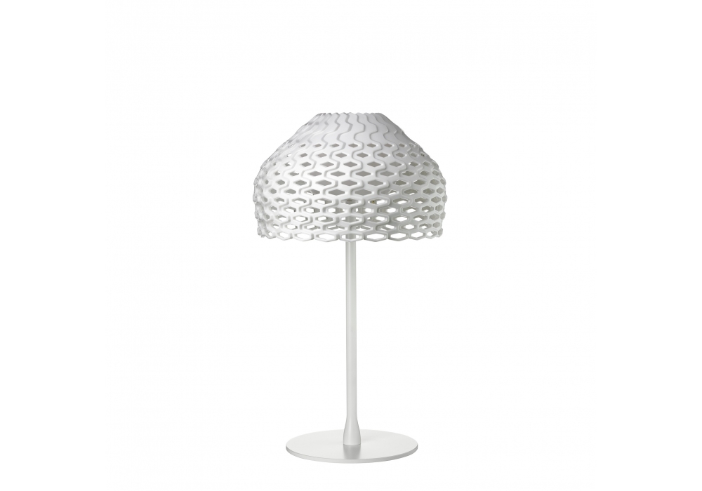 Tatou T1 diseñada por Patricia Urquiola para Flos es una lámpara de sobremesa de luz difusa. Difusor externo de policarbonato. Difusor interno de policarbonato opalino moldeado por inyección. Varilla y base de acero pintado. Regulador de intensidad integrado. Bombilla no incluida.