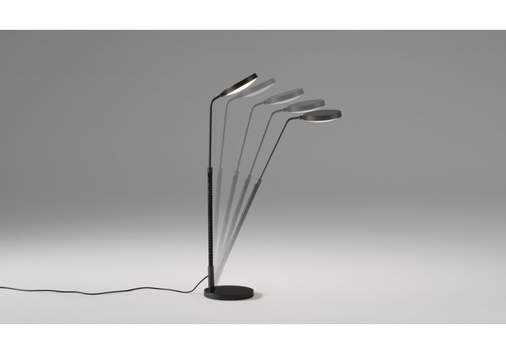 Spoon diseñada por Umberto Asnago para Penta es una lámpara de mesa con estructura en metal mate y cuero tejido a mano en las siguientes combinaciones: negro mate/cuero coñac o negro mate/cuero negro o completamente en metal gris. La fuente de luz adoptada es de tipo LED con sistema de atenuación en el cable de alimentación.