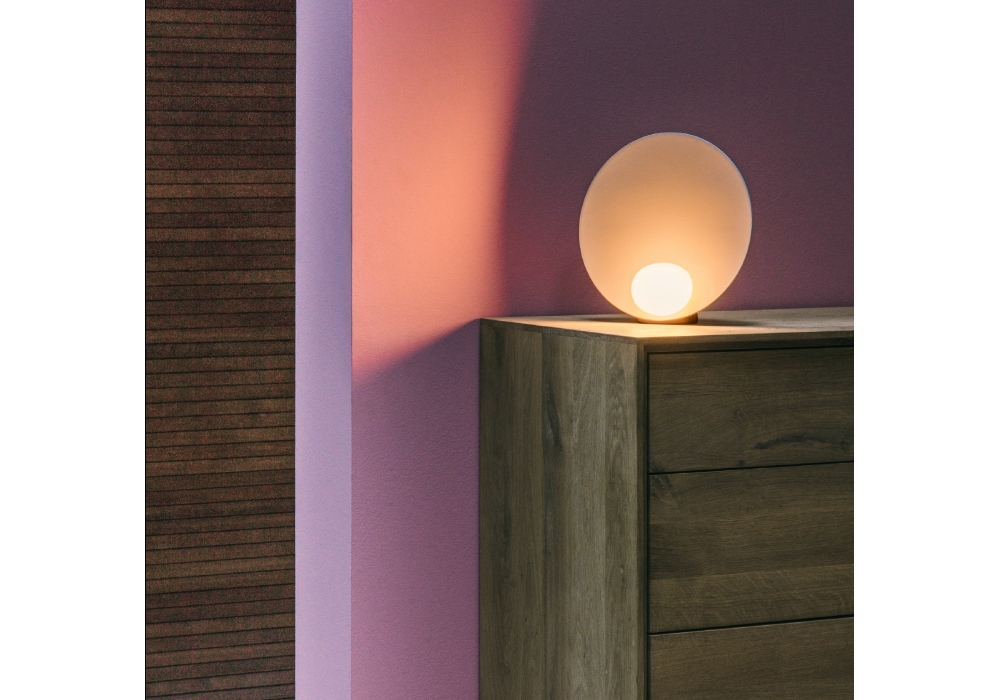 Musa diseñada por Note Design Studio para Vibia es una lámpara de mesa o aplique circular con cuerpo de aluminio pintado. El difusor tiene forma esférica y está fabricado en vidrio soplado opalino de triple capa y protege una fuente de luz LED. Musa está disponible en diferentes acabados y modelos.
