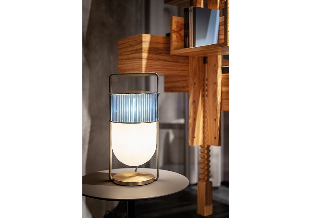 Xi diseñada por Neri & Hu para Poltrona Frau es una lámpara de mesa colocada sobre una base en metal con un acabado de latón natural. La banda en cuero Saddle Extra actúa como un soporte y un mango y es también disponible en 2 diferentes acabados. La luz es ajustable a través de un sistema dimmer touch on/off.