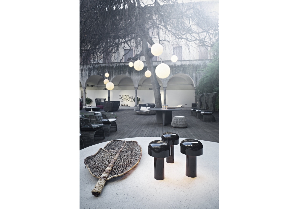 Bellhop, diseñada por Edward Barber & Jay Osgerby para Flos, es una lámpara de mesa recargable con luz directa. Base y cúpula de PC coloreada. Difusor de PC moldeado por inyección con fotograbado opalino. Duración de la batería de hasta 24 horas y carga mediante micro-USB-C. Interruptor pulsador en la base que garantiza la función de atenuación de 4 pasos. Indicador de estado de la batería situado debajo de la base. Cable de carga USB-C incluido. Fuente de luz LED incluida.