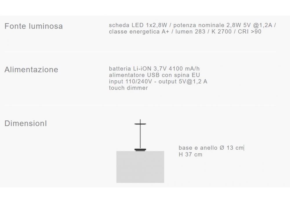 | Dimensiones | Ø 13 cm x H 37 cm |
