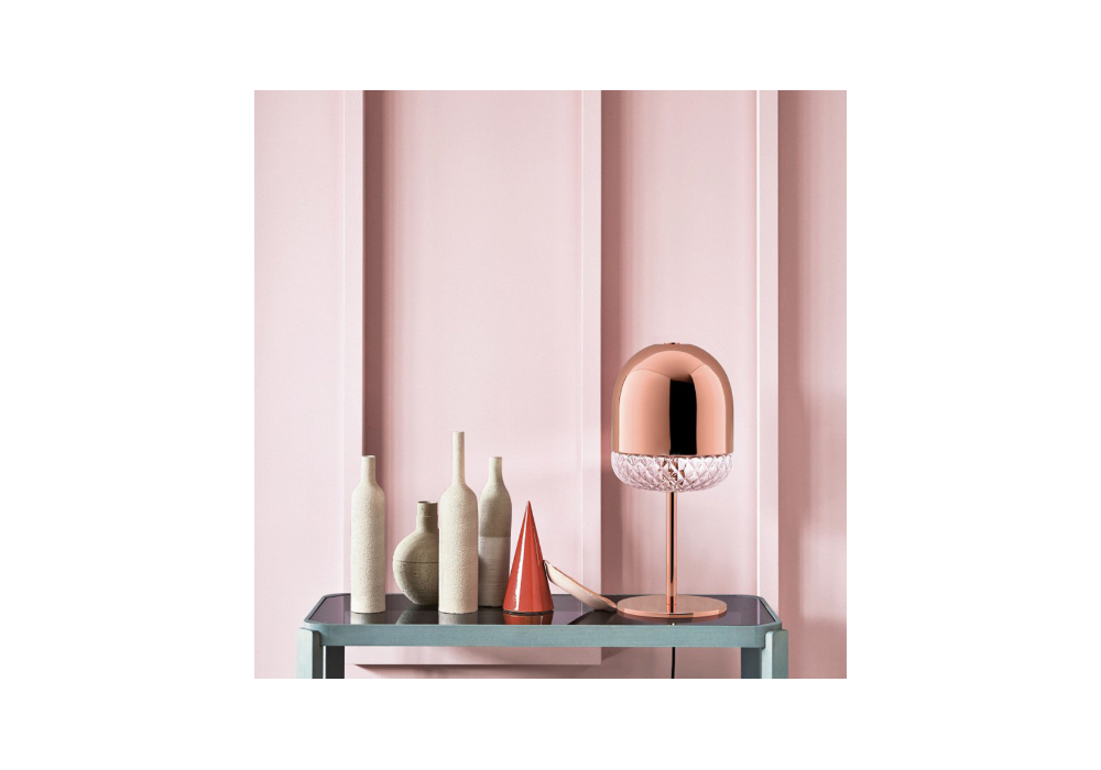 Balloton 7213/L1 diseñada por Matteo Zorzenoni para MMLampadari es una lámpara de mesa con difusor de vidrio balloton y marco de metal, disponible en diferentes colores.