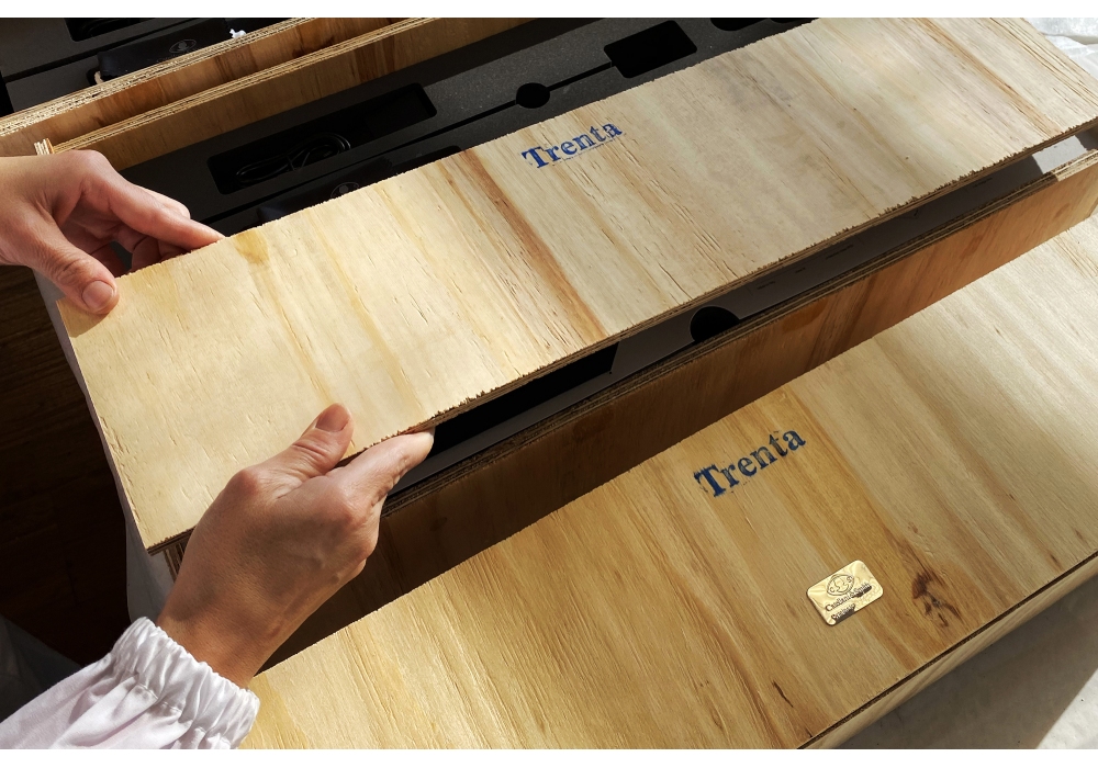 Trenta Limited Edition diseñada por Enzo Catellani para Catellani & Smith es una lámpara de mesa que funciona con pilas. La bombilla de vidrio borosilicato con tapa de cierre magnético en hierro latón; Virola E27 de latón macizo; pedestal en hierro bruñido y protegido en latón. Disponible en las siguientes variantes: base y anillo negro con varilla de latón, base y anillo de latón vintage con varilla de latón. Bateria cargada.