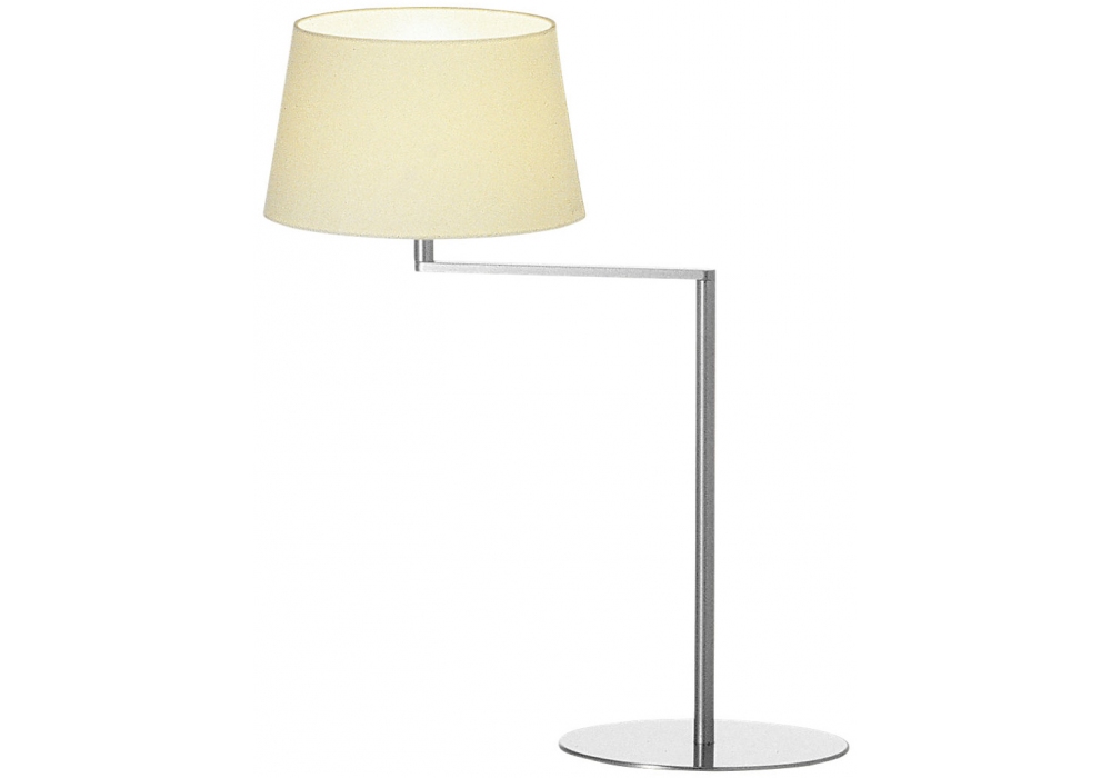 Americana diseñada por Miguel Milà para Santa&Cole es una lámpara de mesa con estructura de níquel satinado y pantalla de lino blanco.