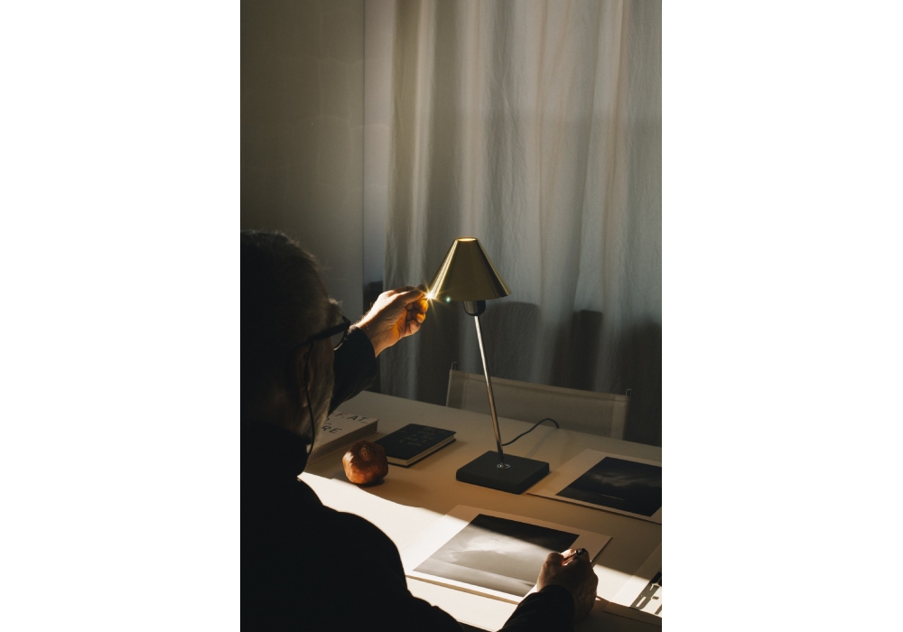 Gira diseñada por J.M. Massana, J.M. Tremoleda, Mariano Ferrer para Santa&Cole es una lámpara de mesa con marco cromado y pantalla disponible en varios acabados.