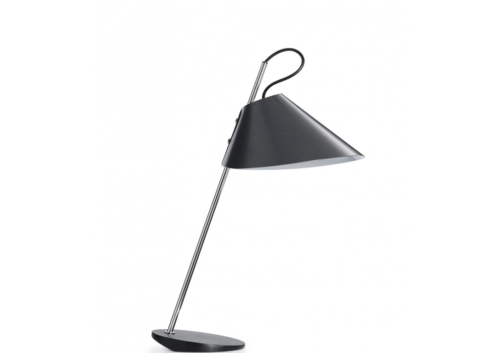 Base Ghisa diseñada por Luigi Caccia Dominioni para Azucena es una lámpara de sobremesa con difusor en aluminio pintado, varilla con acabado en latón o cromo, base en hierro fundido pintado.