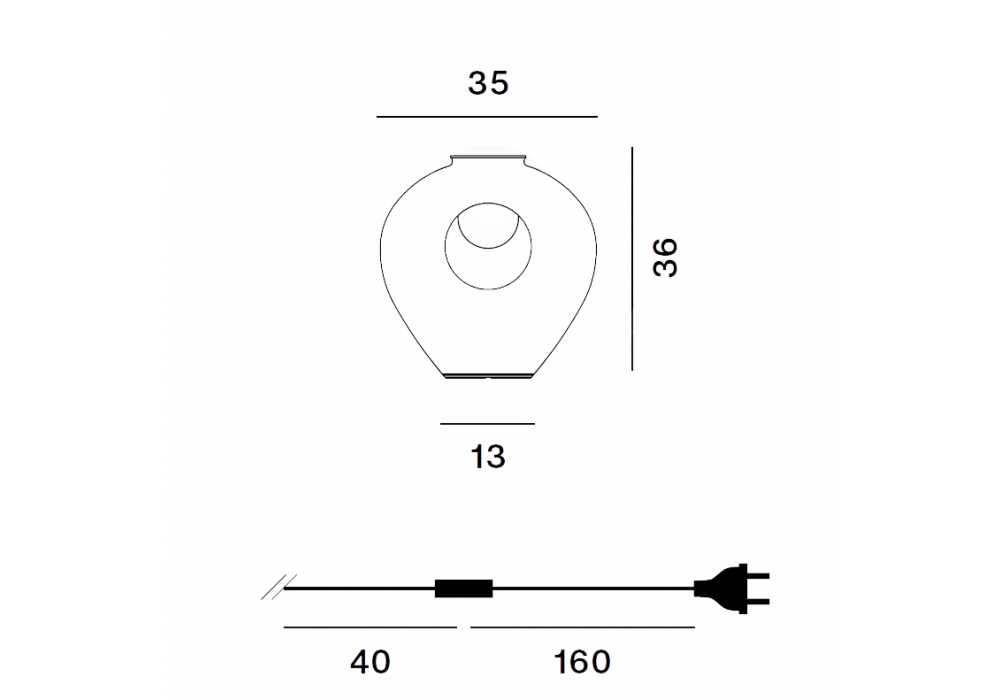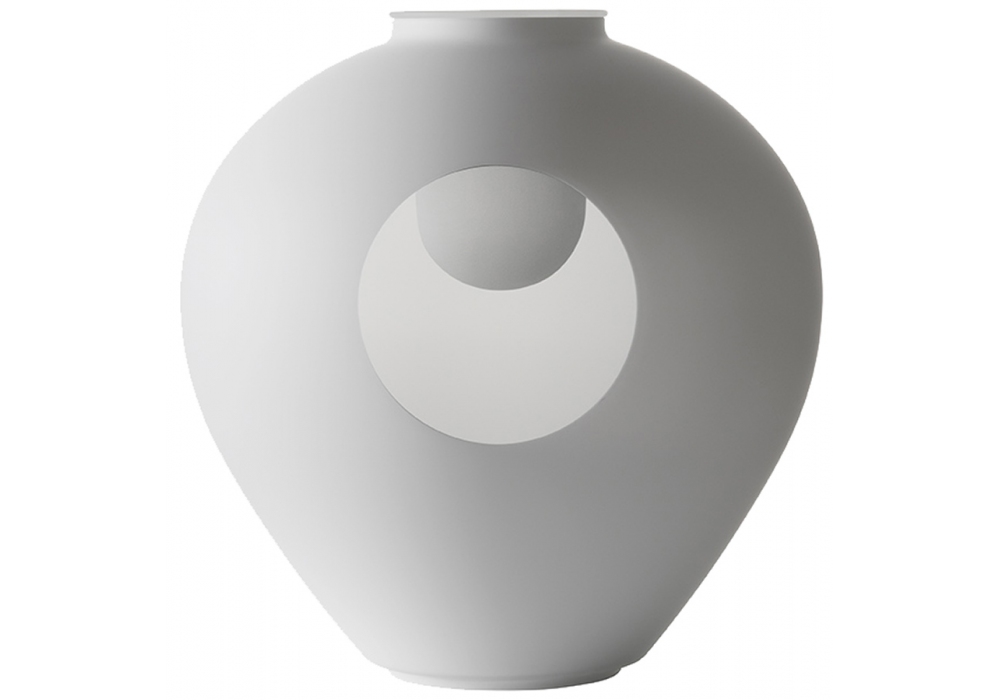 Madre diseñada por Andrea Anastasio para Foscarini es una lámpara de mesa redonda estructurada por la combinación de vidrio soplado, vidrio borosilicato y aluminio. El difusor es de policarbonato y apantalla una fuente de luz LED regulable alimentada por un cable de plástico gris.