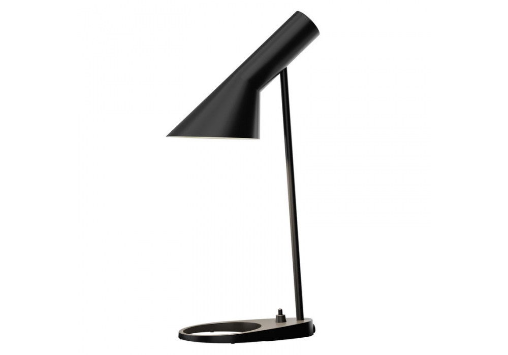 AJ Mini diseñada por Arne Jacobsen para Louis Poulsen es una lámpara de mesa con base en zinc fundido a presión o acero inoxidable, brazo vertical en acero inoxidable. El difusor es de acero y apantalla una fuente de luz tipo LED o halógena con casquillo E14. AJ Mini está disponible en diferentes acabados.