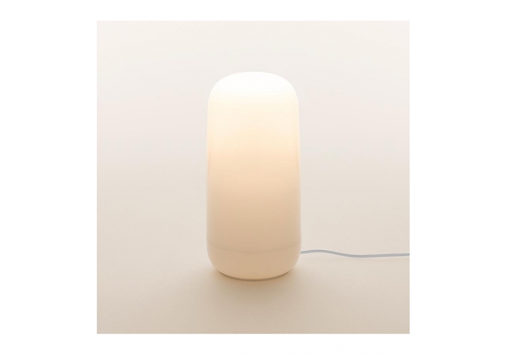 Gople White diseñada por BIG - Bjarke Ingels Group para Artemide es una lámpara de sobremesa LED, con difusor de vidrio soplado blanco y estructura interna en aluminio y metacrilato. La lámpara está disponible en dos modelos: Portable y Plug.