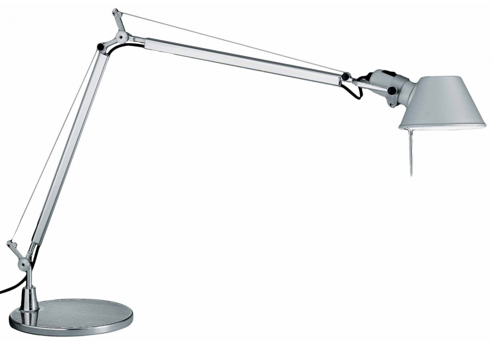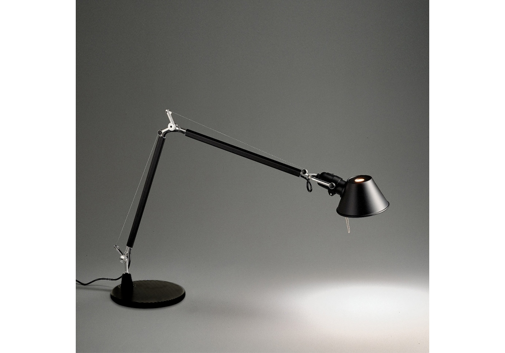 Tolomeo LED diseñada por Michele De Lucchi & Giancarlo Fassina para Artemide con base circular de acero y brazos articulados de aluminio. El cabezal es móvil y adopta una fuente de luz LED regulable integrada. Tolomeo LED está disponible en diferentes versiones y tonalidades de luz.