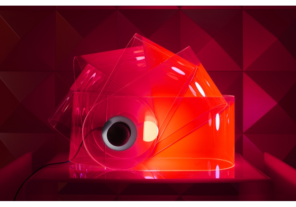 Gherpe diseñada por Superstudio para Poltronova es una lámpara de mesa realizada con difusores de Perspex® cortados y termoformados, detalles en acero inoxidable pulido. Disponible en 2 acabados.