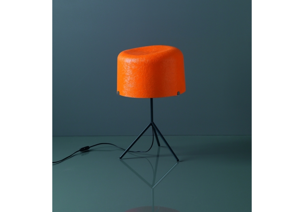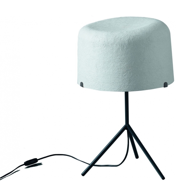 Ola diseñada por Enrico Franzolini para Quadrifoglio Group es una lámpara de mesa con pantalla en fibra de vidrio disponible en diferentes acabados y estructura en metal pintado negro goffratino.