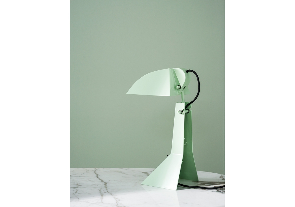 E63 diseñada por Umberto Riva para Tacchini es una lámpara de sobremesa con estructura cromada o pintada, disponible en diferentes acabados.