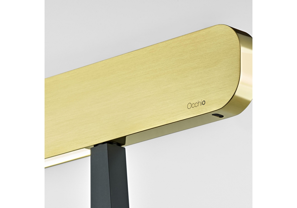 Mito Terra Table Top diseñada por Occhio es una lámpara de mesa LED realizada con difusor / cuerpo en aluminio pintado, revestido en PVD y plástico óptico, base en acero con revestimiento PVD, tacto suave. Se desvanecen hacia arriba y hacia abajo. Regulable mediante "control sin contacto" o con control remoto Bluetooth. Aplicación Occhio air disponible en App Store o Google Play Store.