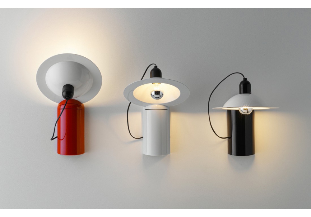 Lampiatta diseñada por Jonathan De Pas, Donato D'Urbino, Paolo Lomazzi para Stilnovo es una lámpara LED de mesa o pared con cuerpo de policarbonato en los acabados: blanco, rojo-blanco y negro-blanco. El difusor es de aluminio blanco y se puede colocar libremente.