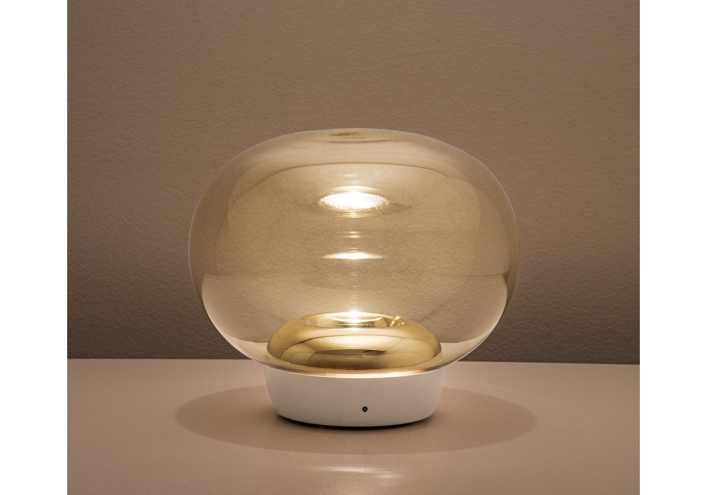 La Mariée diseñada por Mirco Crosatto para Stilnovo es una lámpara de mesa con base de metal pintado en blanco o negro. El difusor es de vidrio soplado con anillo interior de aluminio galvanizado y adopta una fuente de luz regulable topLED. La Mariée está disponible en los acabados: blanco-transparente, negro-ahumado, blanco-cobre y blanco-oro.