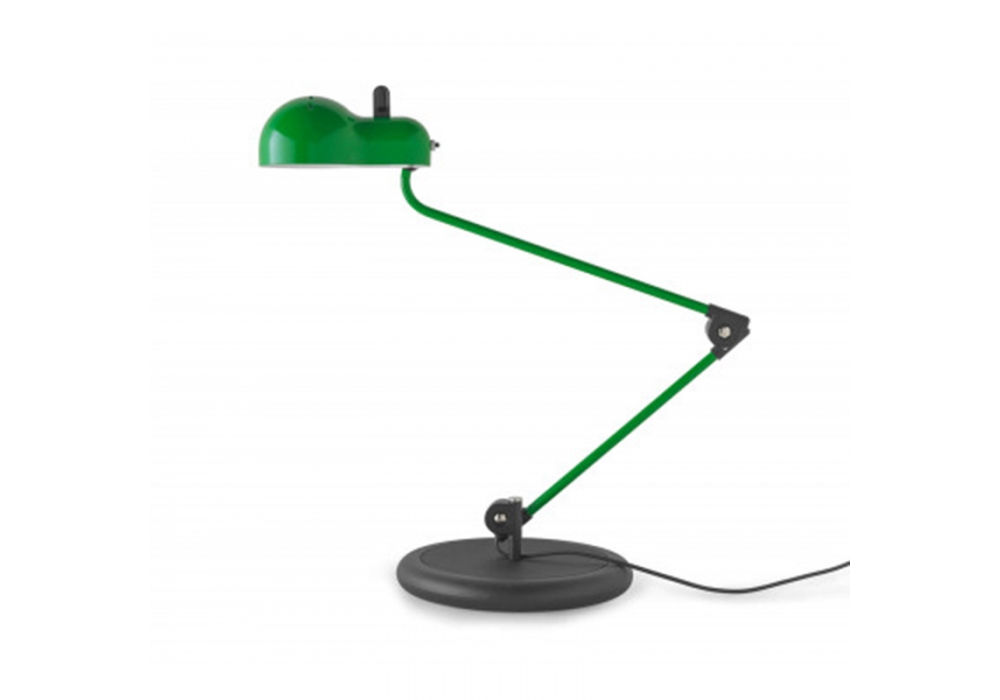 Topo diseñada por Joe Colombo para Stilnovo es una lámpara de mesa estructurada por la combinación de metal, polietileno y material aislante térmico. La base es circular en metal y varilla de polietileno y brazos móviles siempre en metal con juntas en material plástico. El difusor es de metal orientable 50° en horizontal y 25° en vertical. Topo está disponible en los acabados: blanco-negro, negro, rojo icónico, verde menta-negro y cromo-negro.