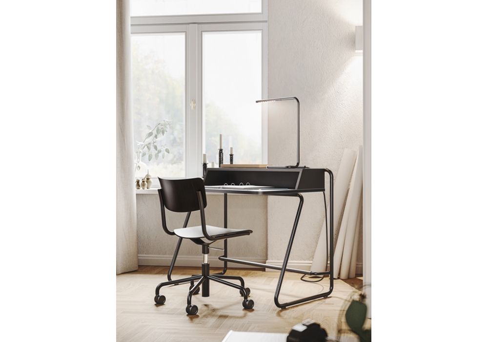 LUM 50 diseñada por Ulf Möller para Thonet es una lámpara de mesa con estructura en tubo de acero cromado con 8 LED blanco cálido. Brazo horizontal orientable a 360° (con tope).