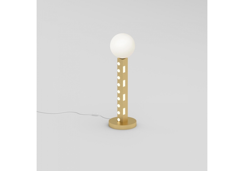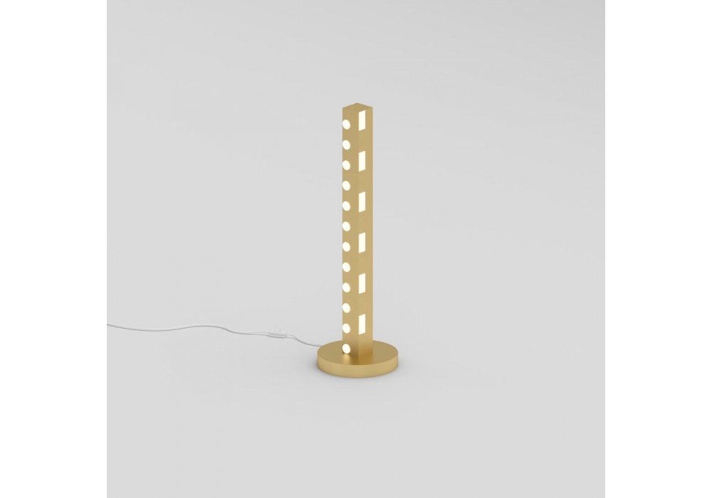 Linetype diseñada por Atelier Areti es una lámpara de mesa realizada en latón cepillado y paneles acrílicos blancos. Disponible en diferentes modelos.