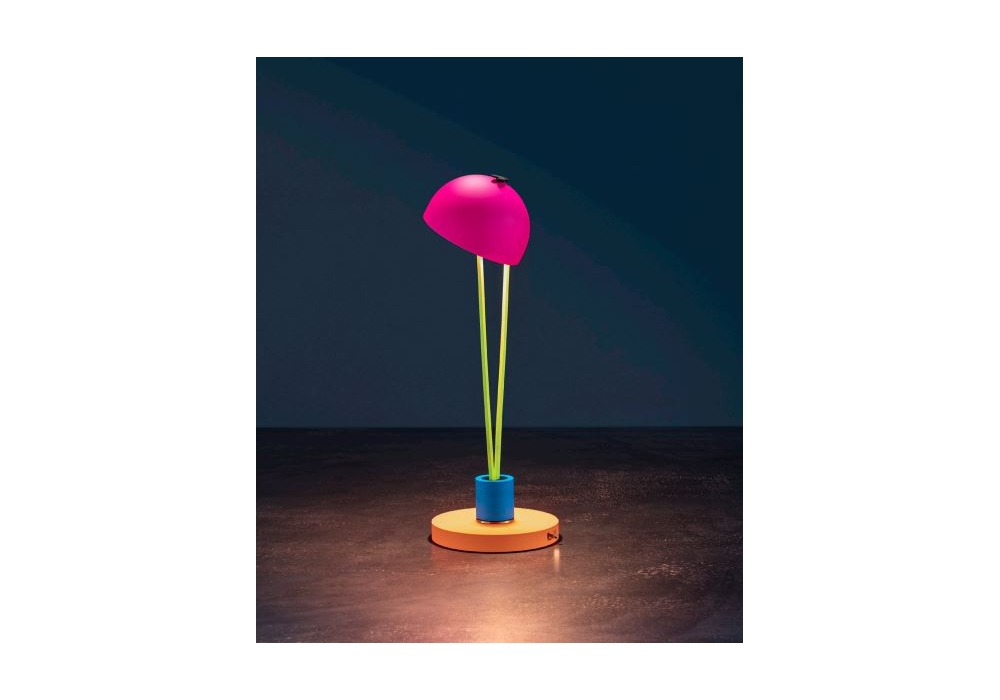 Ale BE T diseñada por Enzo Catellani para Catellani & Smith es una lámpara de mesa alimentada por batería, con base y tubos de aluminio, cúpula de hierro, detalles en latón y acero. Disponible en diferentes acabados.