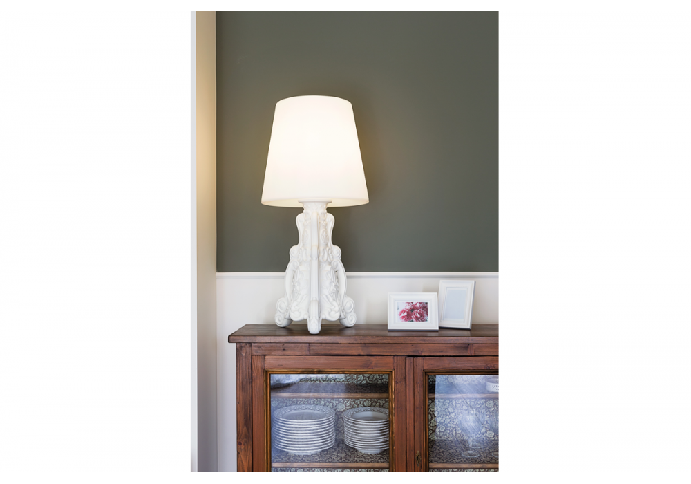 Lady of Love diseñada por Graziano Moro & Renato Pigatti es una lámpara de mesa que combina clasicismo y elegancia. Nacido inspirándose en el clásico abat-jour, ofrece una original reinterpretación de un gran clásico barroco. Disponible en diferentes acabados