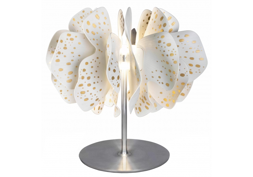 Nightbloom esculpida por Dept. Diseño y Decoración y diseñada por Marcel Wanders para Lladró es una lámpara de mesa con base circular y estructura portante de metal tubular. El cuerpo difusor está formado por un juego de pétalos de porcelana hechos a mano. Nightbloom está disponible en diferentes acabados.