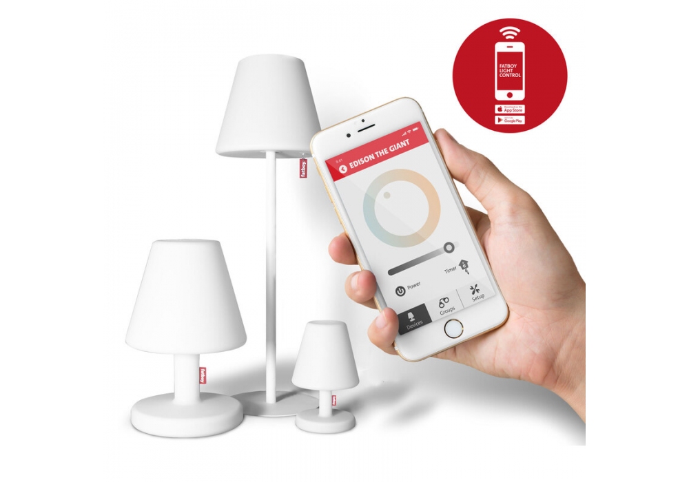 Edison the Medium diseñada por Fatboy es una lámpara de mesa LED elegante, ecológica y robusta gracias al material polietileno. Está equipado con un sistema de ajuste de la intensidad de la luz y tiene un alcance de nada menos que 10 metros.