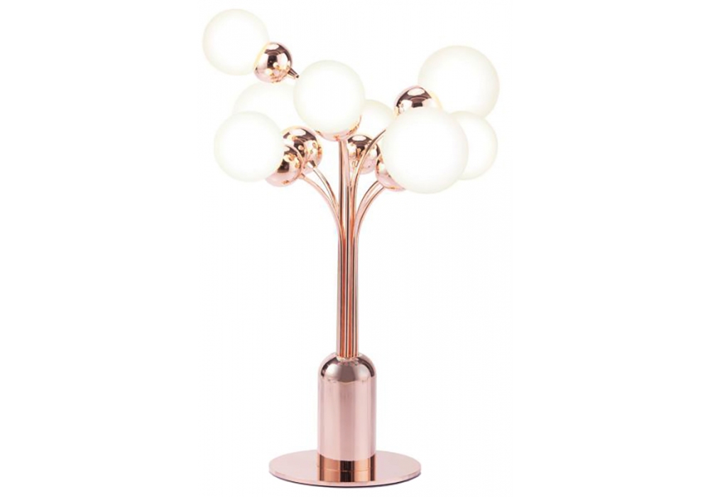 P.E.A.C.E diseñada por Thomas Dariel para Maison Dada es una lámpara de mesa completamente realizada en metal con base circular. Los difusores son ocho globos de cristal de varios tamaños con acabado mate en cristal opal y blindan una fuente de luz tipo LED. P.E.A.C.E está disponible en diferentes acabados.