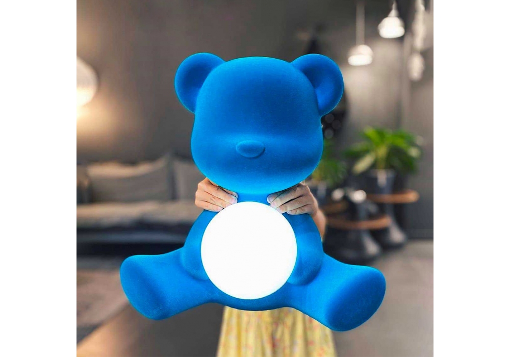 Teddy Girl Velvet diseñada por Stefano Giovannoni para Qeeboo es una lámpara de mesa portátil y recargable realizada completamente en polietileno. Teddy Girl Velvet está disponible en diferentes acabados.