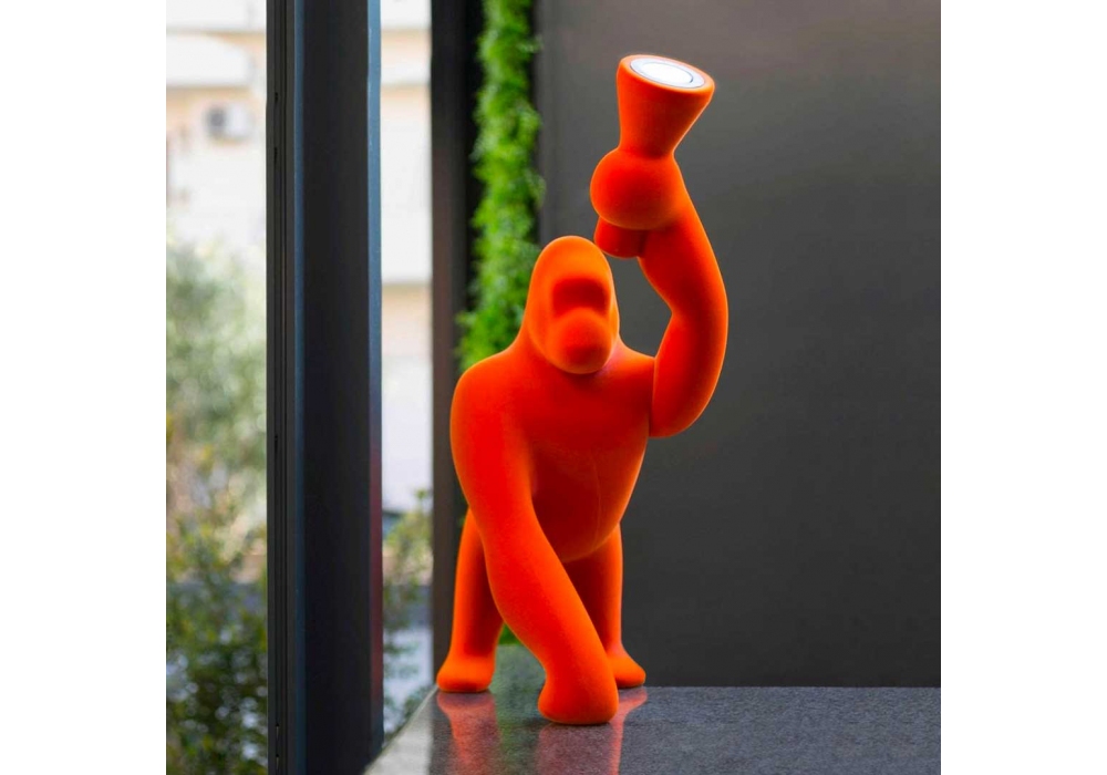 Kong XS Velvet diseñada por Stefano Giovannoni para Qeeboo es una lámpara de mesa realizada completamente en polietileno. Kong XS Velvet está disponible en diferentes acabados.