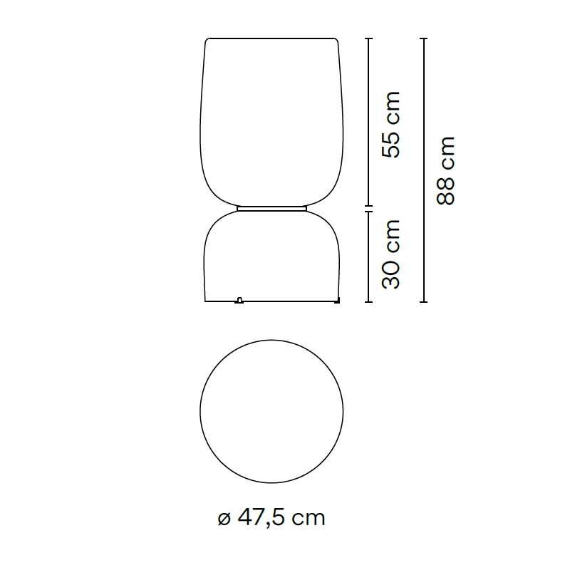 | Dimensiones | Ø 47,5 x H 112 cm; Ø 47,5 x H 92 cm; Ø 47,5 x H 88 cm. |