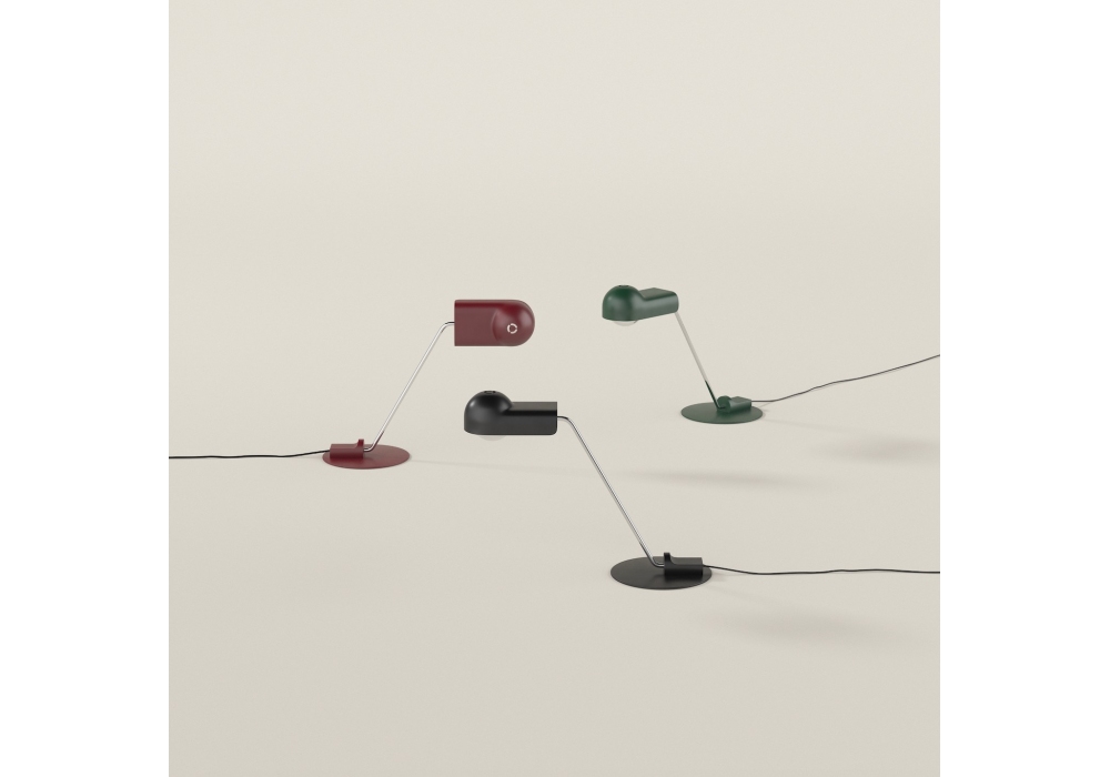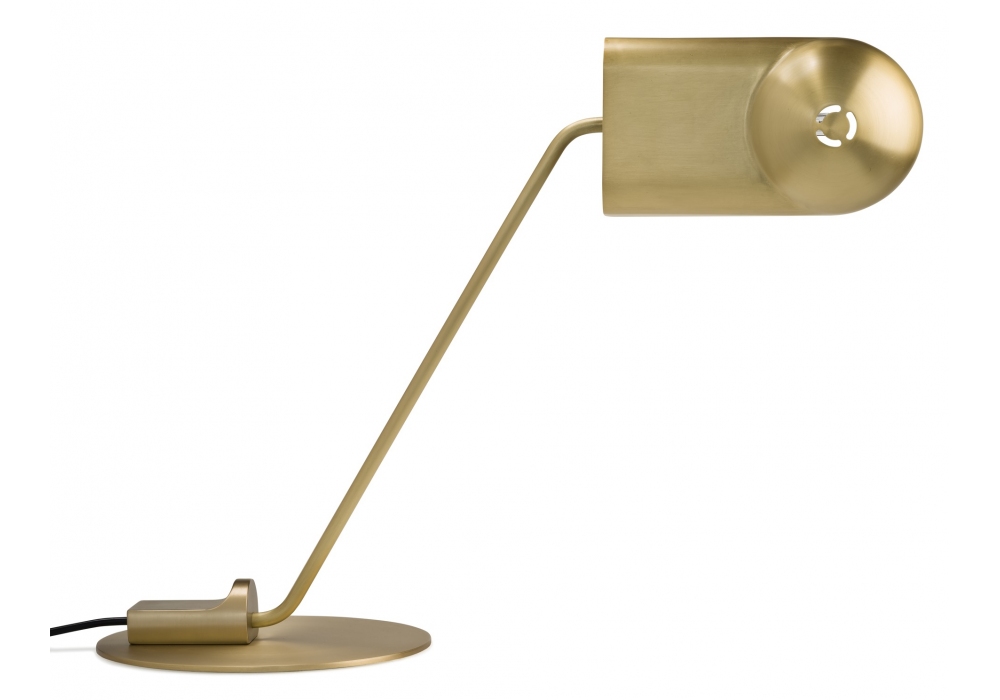 Domo Table diseñada por Joe Colombo para Karakter es una lámpara de mesa realizada en latón con superficie cepillada y barniz transparente, acero con recubrimiento en polvo negro o acero con cabezal y base con recubrimiento en polvo y pie cromado. Disponible en diferentes acabados.