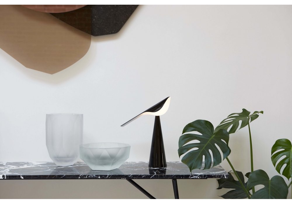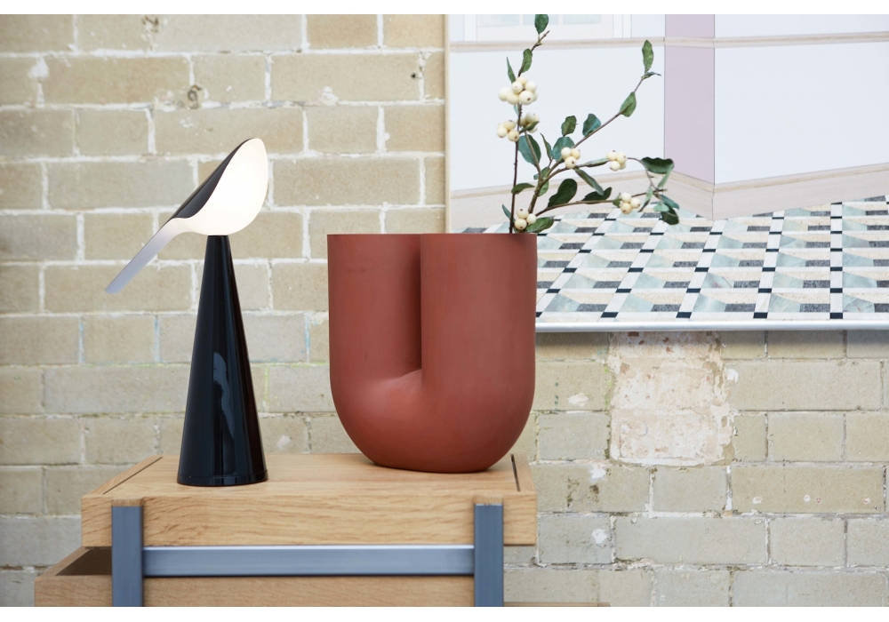 Tiki diseñada por Nao Tamura para Established & Sons es una lámpara de pie en forma de pájaro realizada robóticamente con una estructura en cerámica vidriada brillante y acrílico. Disponible en diferentes acabados.