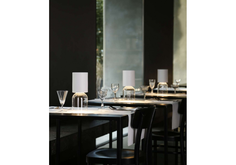 Nui Mini diseñada por Meneghello Paolelli para Luceplan es una lámpara de mesa portátil con estructura en acero pintado y cristal transparente. Está equipado con un cable USB/USB-C. El cargador USB se puede adquirir como accesorio. Disponible en diferentes acabados. También apto para exteriores.