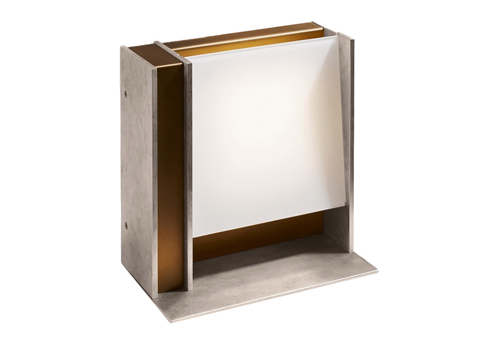 Glam diseñada por Massimo Tonetto para Venicem es una lámpara de mesa con luz difusa. Estructura en acabado peltre y latón delabré o latón natural bruñido y latón bruñido oscuro. Difusor de cristal blanco.