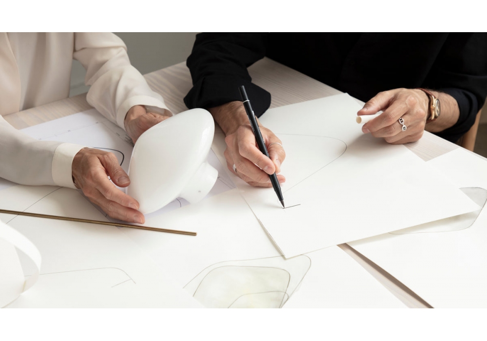 Repose diseñada por Gam Fratesi para Lyfa es una lámpara de mesa en metal y vidrio opal. Disponible en diferentes acabados.