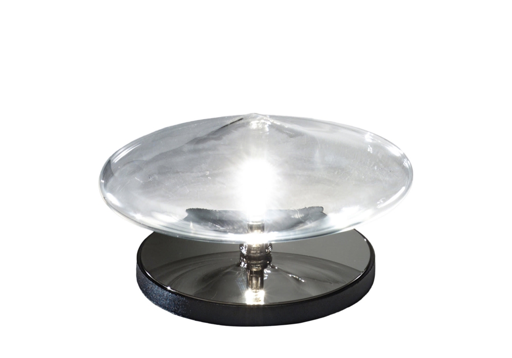 Essenza diseñada y producida por Fisionarte Studio es una lámpara de mesa con base circular en metal cromado negro. El difusor es de vidrio borosilicato transparente y apantalla una fuente de luz tipo LED con conexión G4. Essenza está disponible en diferentes modelos.